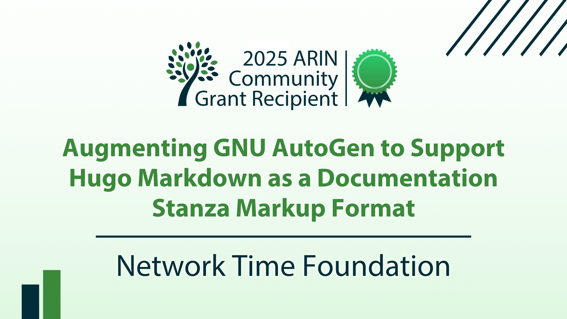 Since then, we’ve rewritten our WordPress, downloads, documentation archive, and static sites to use Hugo. We want a single “source” for all our documentation, and the next step toward this goal is to add Hugo markdown as a supported markup type in GNU AutoGen. Once we have this capability, we can reorganize our documentation using a single “source” instance for each significant piece of documentation and then more easily and simply maintain and generate all our documentation targets.